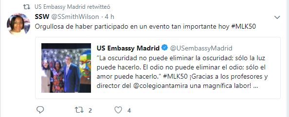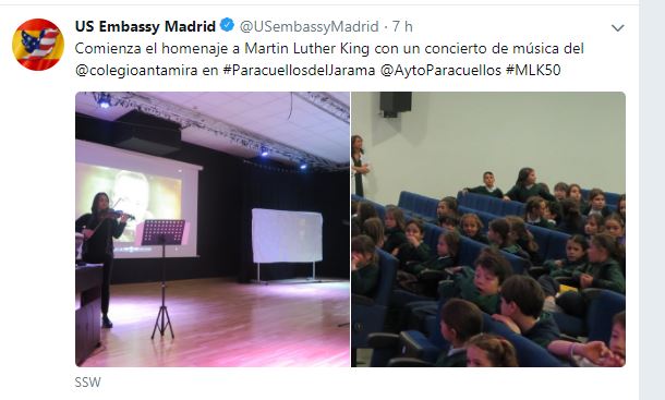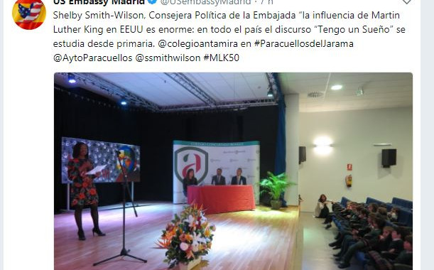 La Embajada de los Estados Unidos se hizo presente en reconocimiento de la importancia de este homenaje y destacó la relevancia universal de los ideales de Martin Luther King.